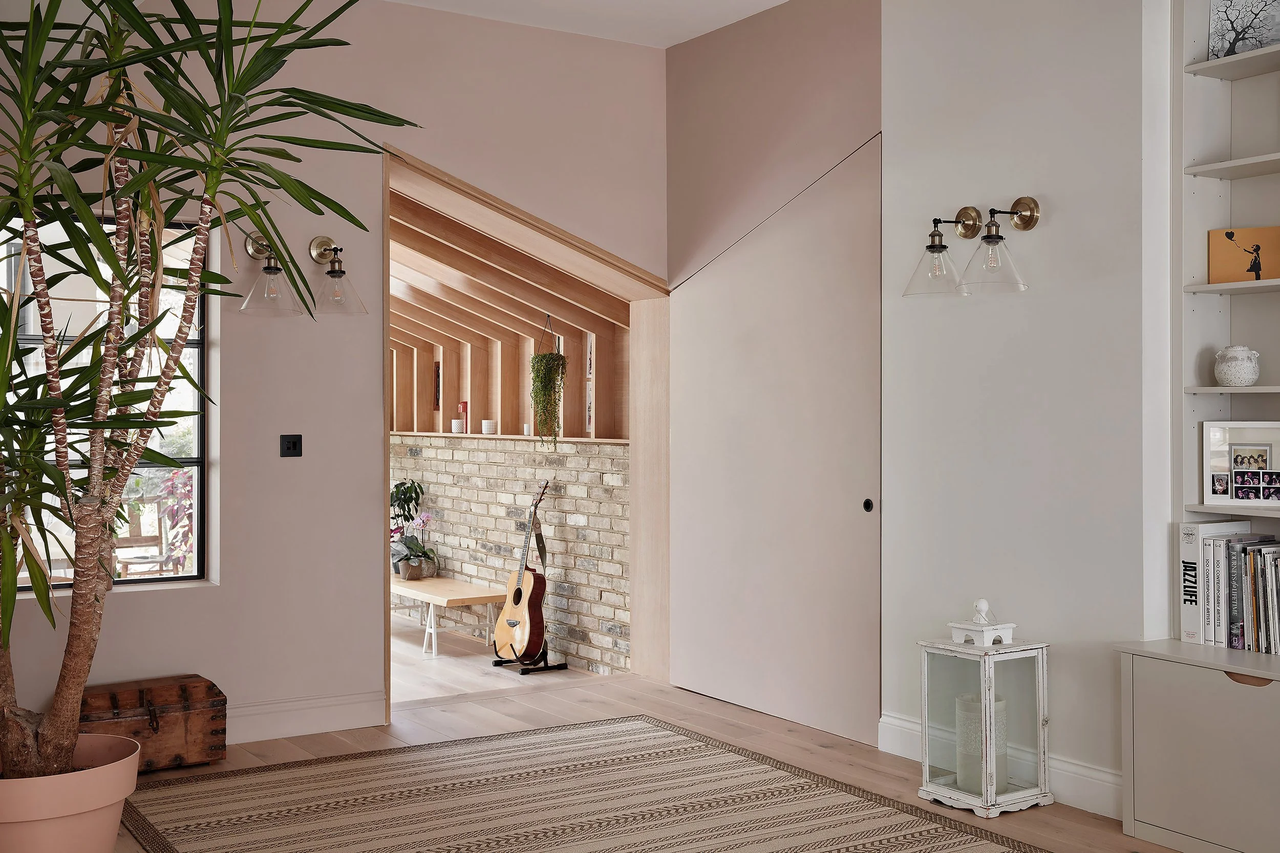 A new timber-lined opening was introduced to link the front and rear of the house, thoughtfully blending original features with contemporary elements. Natural light was a key driver in the design, with rooms reconfigured to maximise daylight throughout the day.